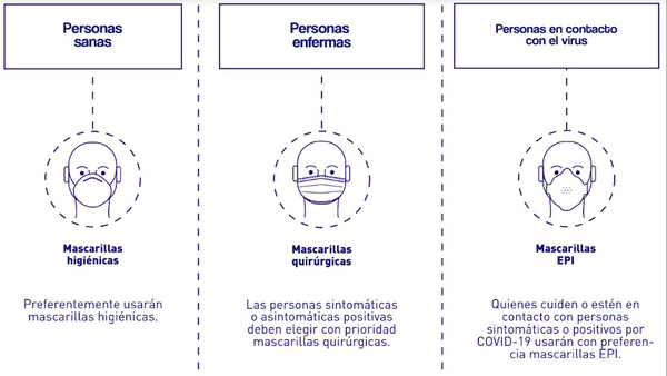 Para la población general, el Departamento que dirige Alberto Garzón sugiere el uso de las mascarillas higiénicas en el caso de las personas sanas y sin contacto con la COVID-19 y de las quirúrgicas para